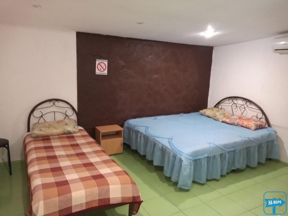 3х местный на втором этаже, раздельный санузел з душевой,вид на море, телевизор, холодильник, комод, стол.