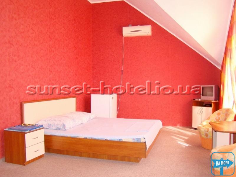 Комфортабельные номера Дорогие отдыхающие, у нас Вы можете остановиться в 2-х, 3-х и 4-х местных комфортабельных номерах "Стандарт", "Полулюкс" и "Люкс" класса. Все номера имеют индивидуальный вход. В номерах по-домашнему уютно и есть все условия для приятного времяпрепровождения: сплит-система, новые кровати, корпусная мебель, телевизор, кабельное ТВ, холодильник и др. удобства. Санузлы и душевые кабины с круглосуточной подачей горячей и холодной воды. Во всех номерах производится влажная уборка и смена постельного белья. Нашим гостям предоставляется также бесплатная круглосуточно охраняемая стоянка для автомобилей.