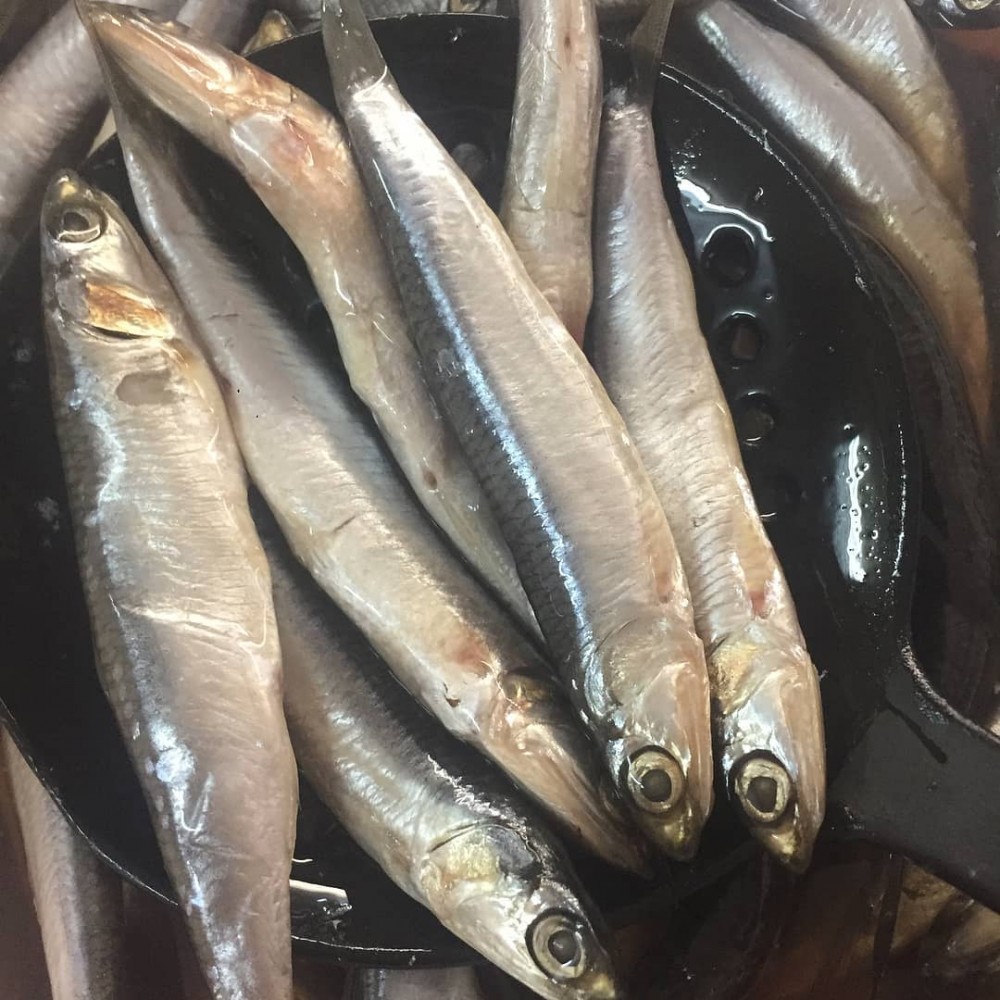 Хамса. Попадается редко, но очень вкусная. Соленой можно употреблять с картошечкой. А жаренная поедается целиком, как семочки.