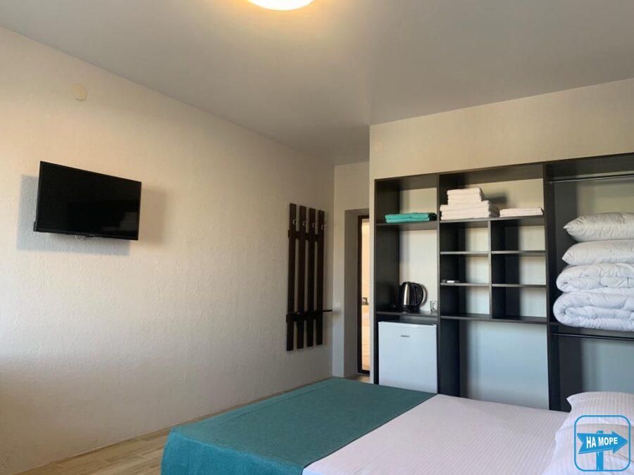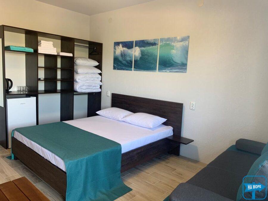 Стильные и современные однокомнатные номера с персональными выходоми на балкон и бесплатным WI-FI (рассчитан на 2-4 человека). В каждом номере одна двуспальная кровать с ортопедическим матрасом ComFort Hard Plus, двуспальный диван (или односпальная софа),плазменный телевизор, кондиционер, холодильник, электрочайник, ванная комната с душевой кабиной и косметическими средствами (гель-мыло-шампунь). Предоставляются постельные и банные принадлежности, а также, полотенца для шезлонгов у бассейнов на территории отеля.