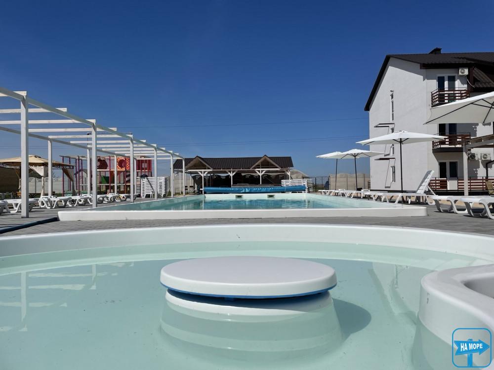 Бассейны: на территории есть два бассейна, пользование которыми уже входит в стоимость проживания; взрослый бассейн - 15х6 метров, детский - 3,45х2,6 метра. Возле бассейнов: зонтики, навесы и шезлонги, которые всегда предлагаются бесплатно для гостей.
