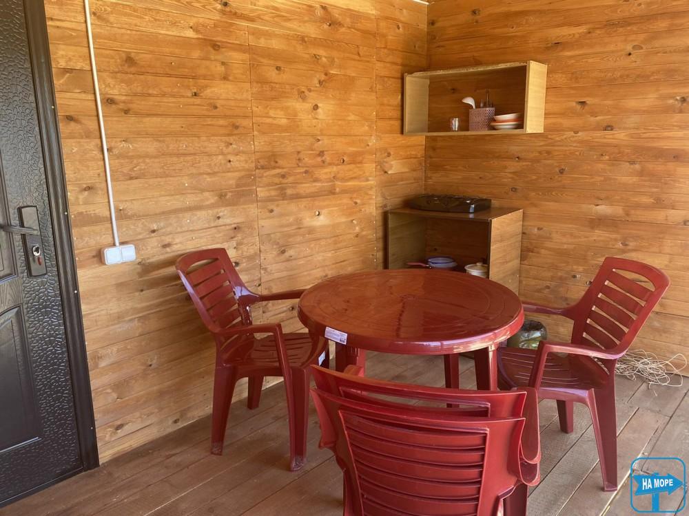 Все номера с мини кухнями( газовая плита, столик для приготовления еды, вся необходимая для семьи посуда) Перед каждым номером есть своя терраса со столом, есть своя мини-кухня, стол для отдыха.