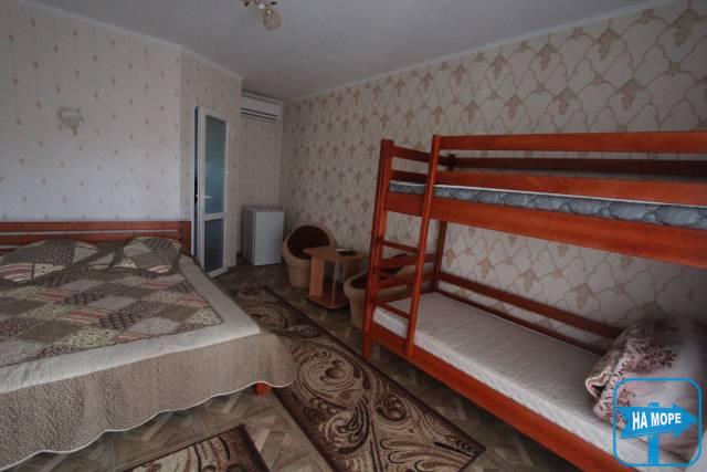 В номере большая двухспальная и двухярусная кровать(может разместиться как ребенок так и взрослый), телевизор, wi-fi, холодильник, кондиционер, отдельный санузел с постоянной горячей водой,шкаф, журнальный столик, пуфик. Рядом с номером стол и стулья для отдыха на свежем воздухе.