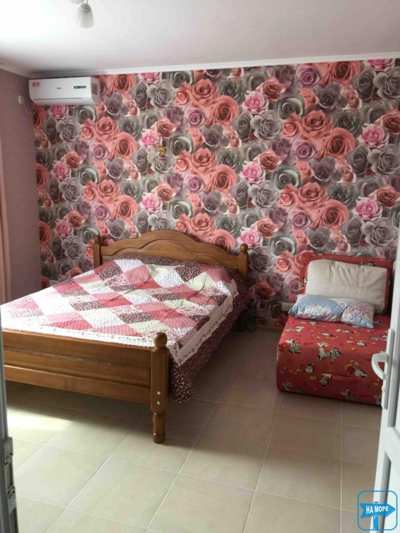 В номере большая двухспальная кровать и раскладной односпальный диван(может разместиться как ребенок так и взрослый), телевизор с плоским экраном, wi-fi, холодильник, кондиционер, отдельный санузел с постоянной горячей водой, шкаф, журнальный столик, пуфик. Рядом с номером стол и стулья для отдыха на свежем воздухе.