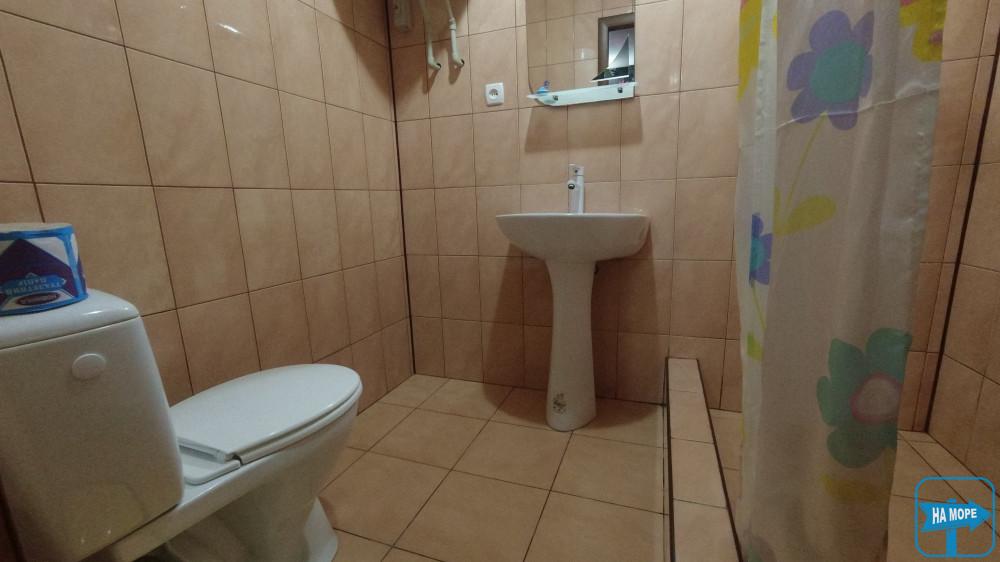 Санузел совмещен, умывальник, душевая, унитаз, аксессуары. Вода холодная и гарячая круглосуточно.