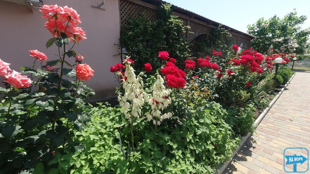 Оба корпуса находятся на расстоянии 200 метров от собственного пляжа. Территория нашего заведения закрыта от посторонних, благоустроенна, с большим количеством зелёных насаждений и цветов.
