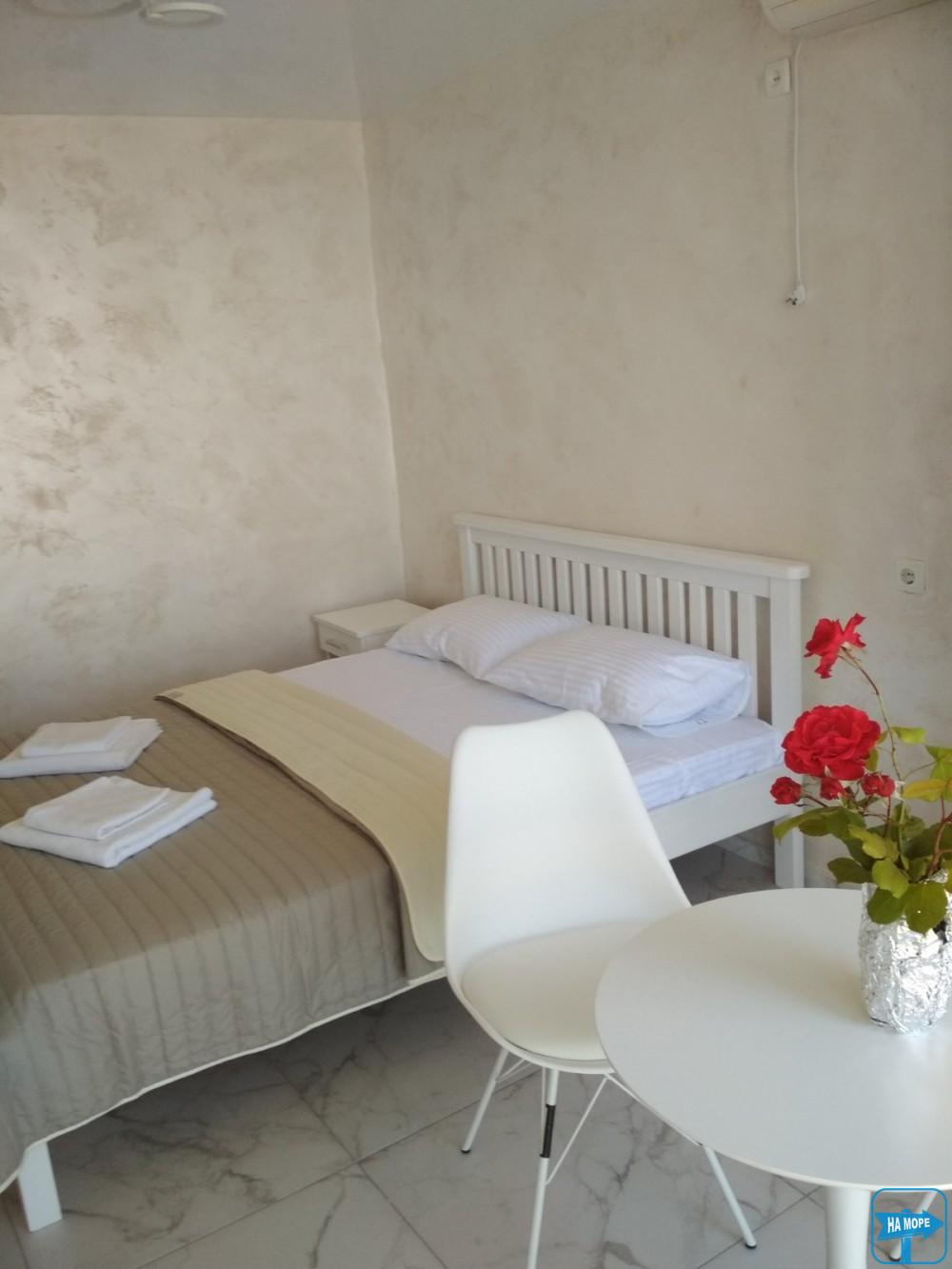 Отдыхающим предлагается 2-х, 3-х, 4-х местные номера со всеми удобствами, а также деревянный котедж, деревянный домик. Расстояние до моря 50 метров. В номерах вся необходимая мебель, телевизоры, кондиционеры, есть кухни и санузлы со всем необходимым.