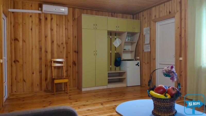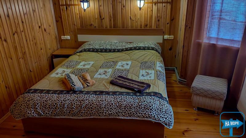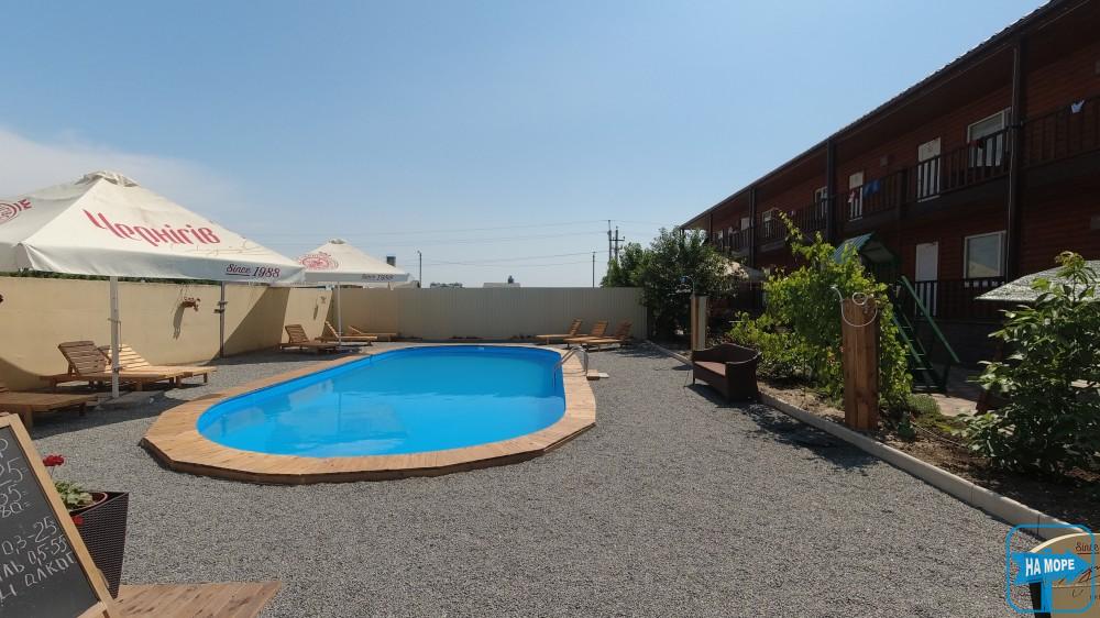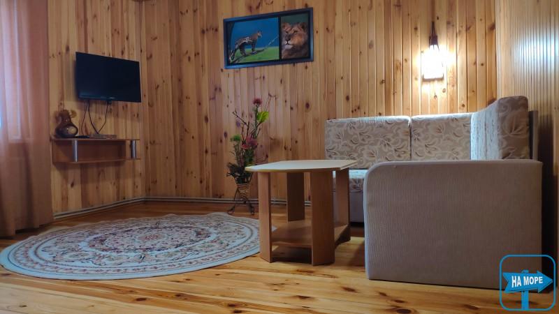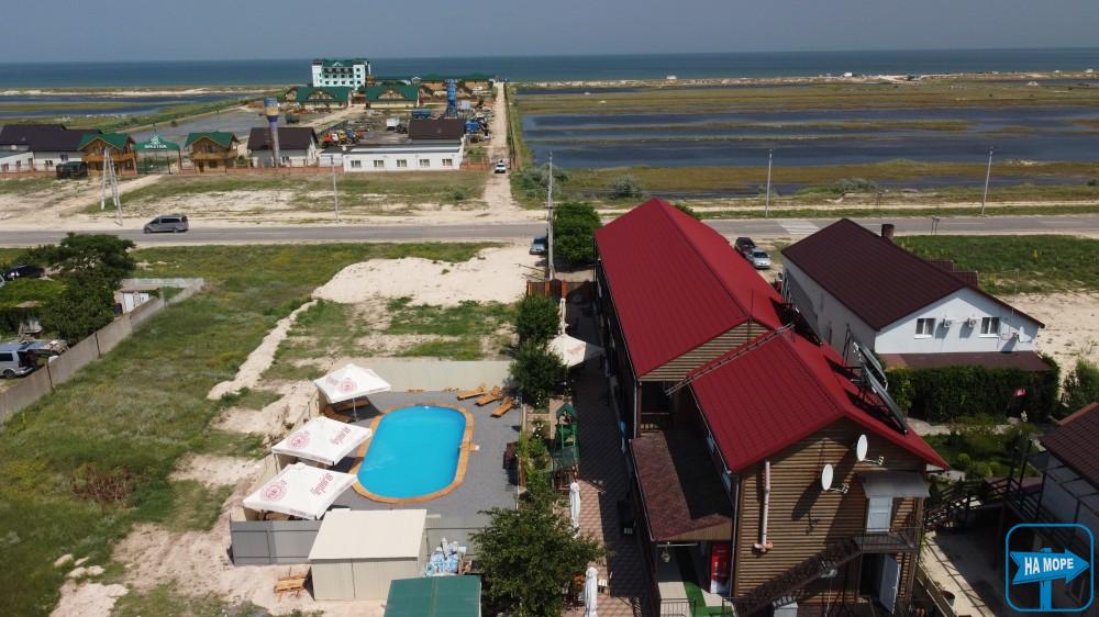 Двухэтажный корпус виллы и номера обшиты натуральным деревом, что создает прекрасный аромат. Во всех номерах есть новая мебель, холодильник, кондиционер, телевизор со спутниковым телевидением, постельное белье и полотенца. Выход из номеров на большой балкон, с которого открывается прекрасный вид на Азовское море и знаменитое солёное озеро Сиваш. Подача горячей и холодной воды в номера осуществляется круглосуточно. Частота уборки номеров и смена постельного белья осуществляется по требованию гостей.