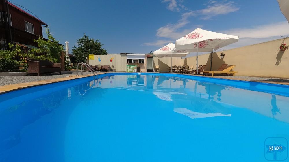Бассейн 11.5 на 5,5 м! При бассейне бар есть! Работает бассейн с 8:00 до 20:00