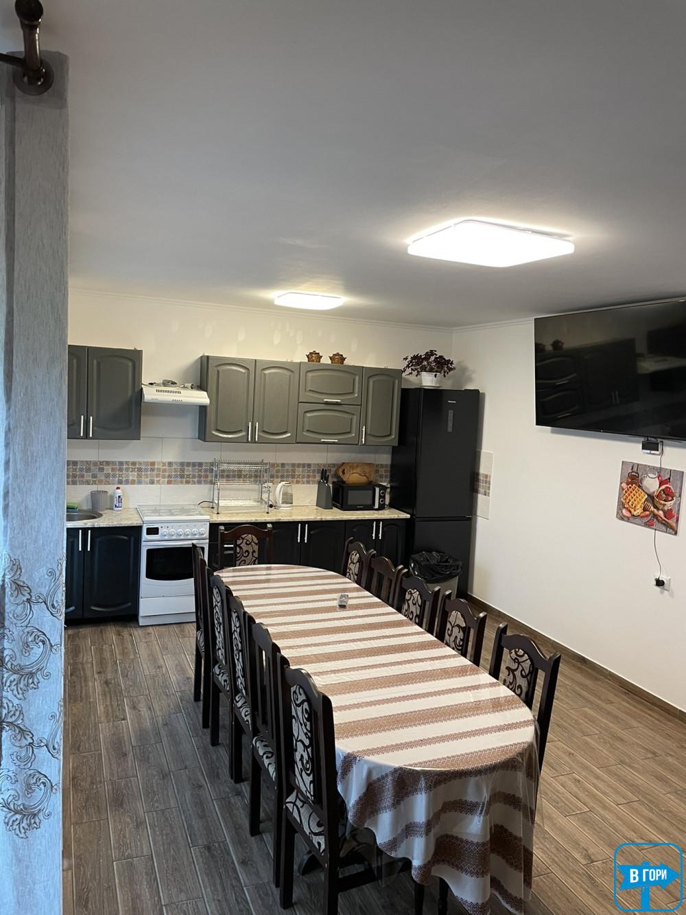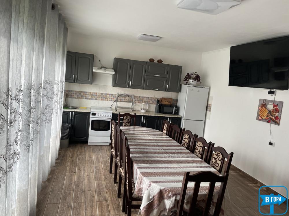 кухня (газовая плита, микроволновая печь, холодильник, электрочайник, посуда, мойка, обеденный стол, телевизор);