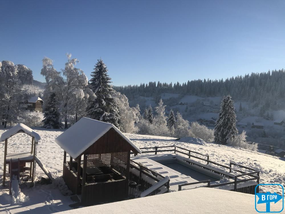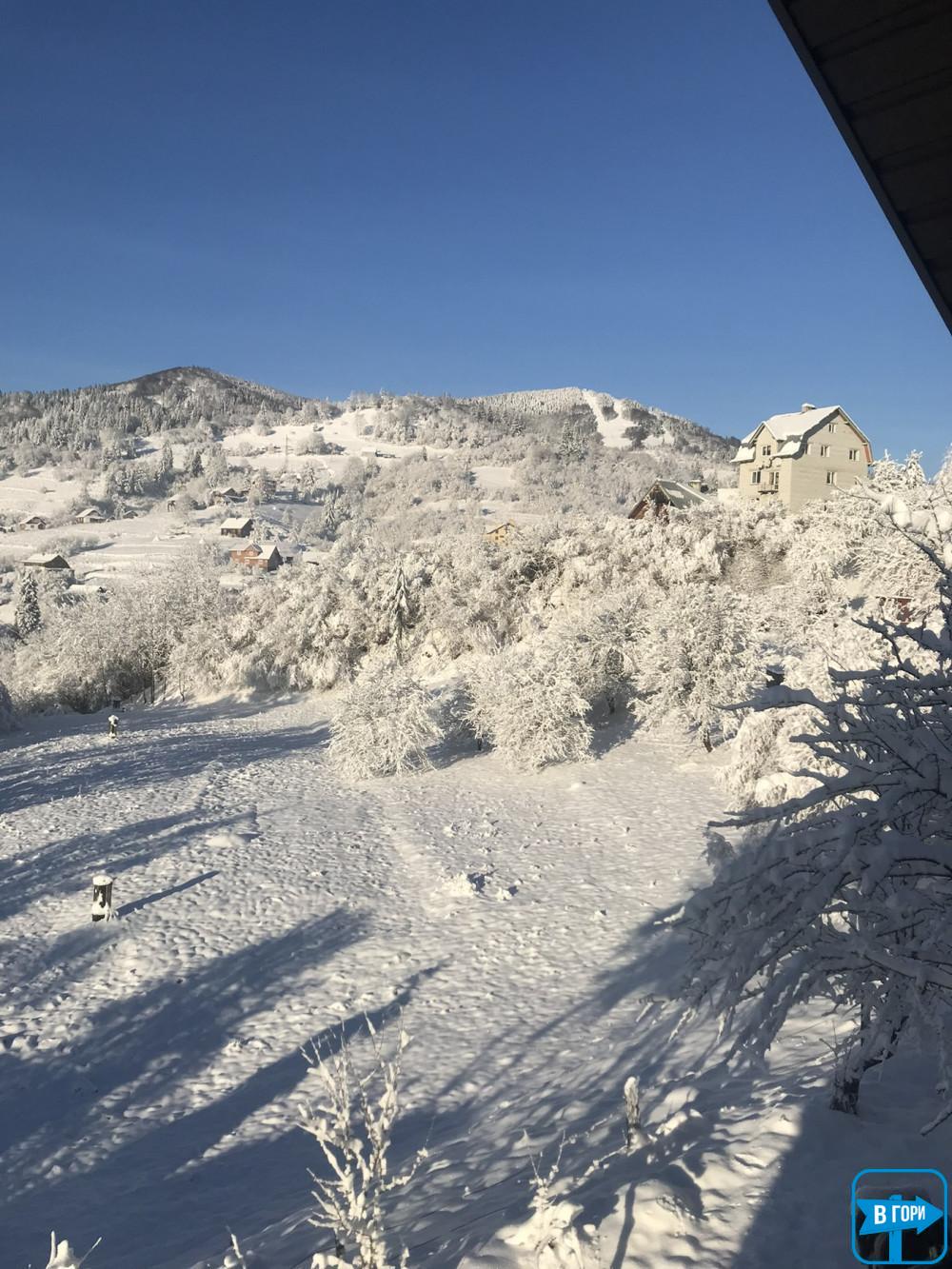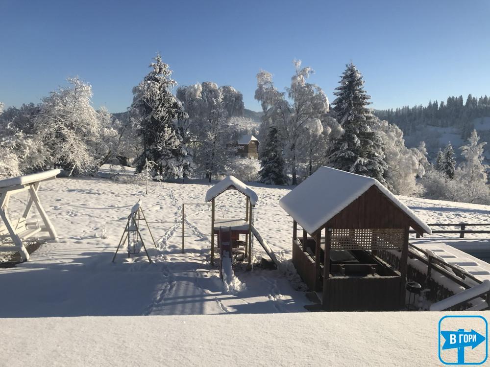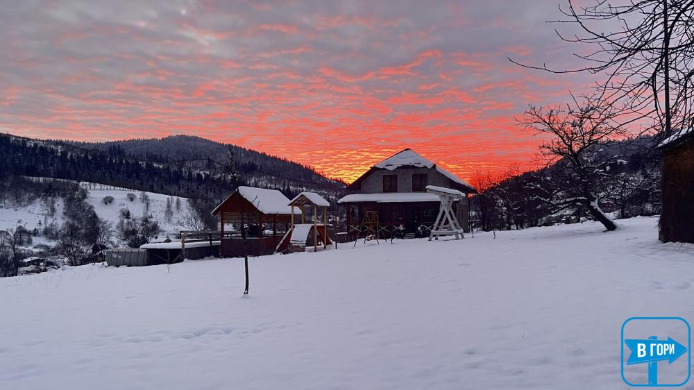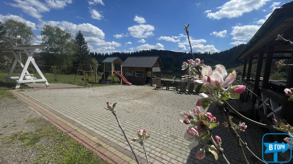 В поселке Славское, 800 м от центра поселка и железнодорожного вокзала, а также 800 м до нижней станции горнолыжного подъемника "Динамо-Тростян".