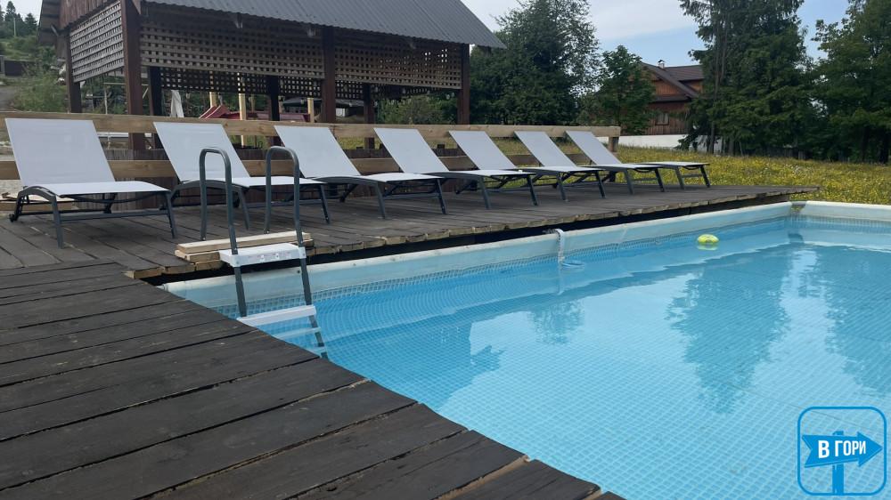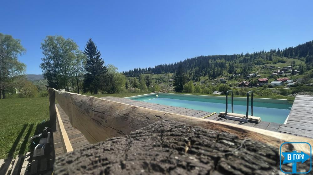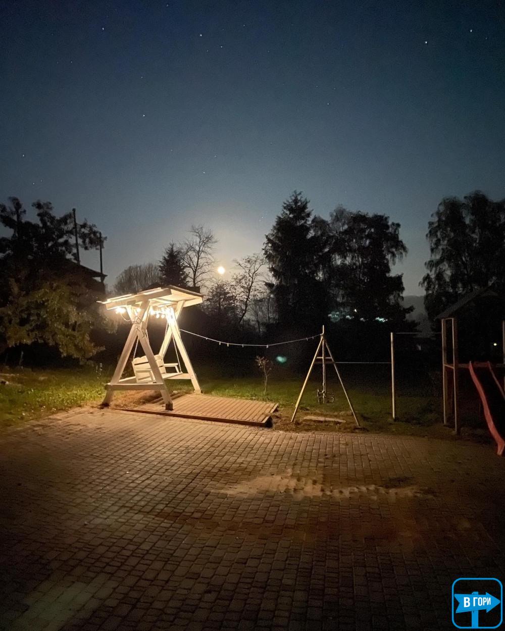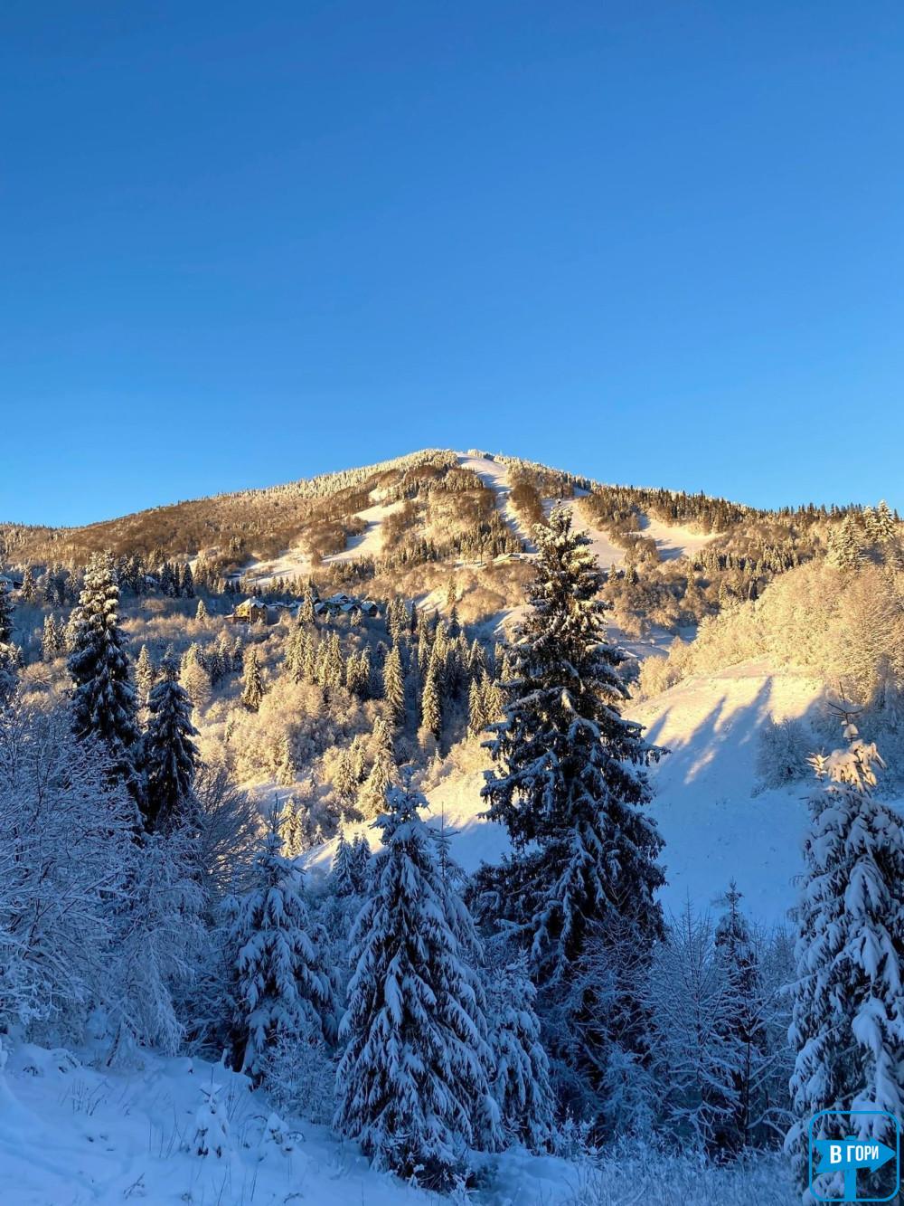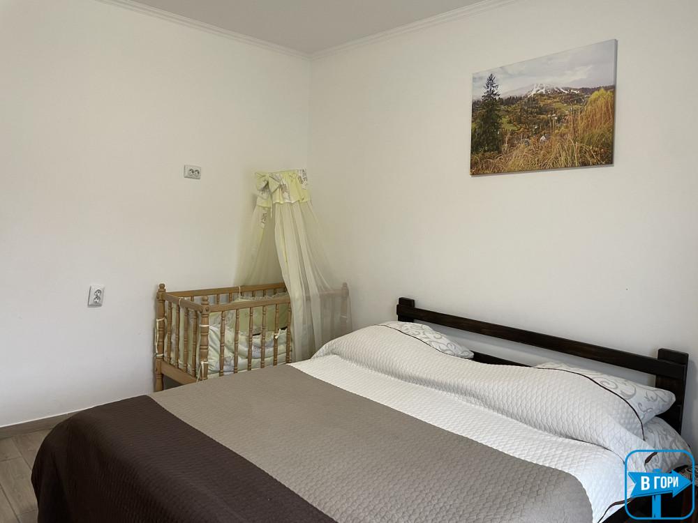 В поселке Славское, 800 м от центра поселка и железнодорожного вокзала, а также 800 м до нижней станции горнолыжного подъемника "Динамо-Тростян".