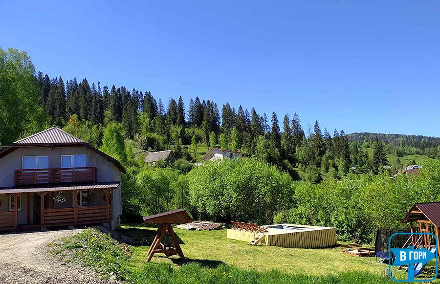 «ХАТА В КАРПАТАХ» расположена в поселке Славское, 1,6 км от железнодорожного вокзала и центра поселка, 3 км до горнолыжных подъемников «Динамо-Тростян». Подъезд — грунтовая дорога.