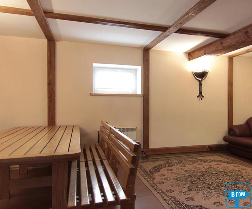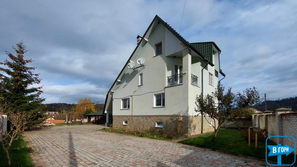 Котедж расположен в поселке Славское, 800 м от центра поселка, 150 м до подъемников на г. Погар.