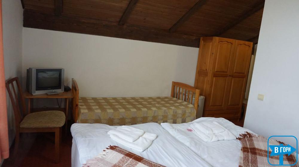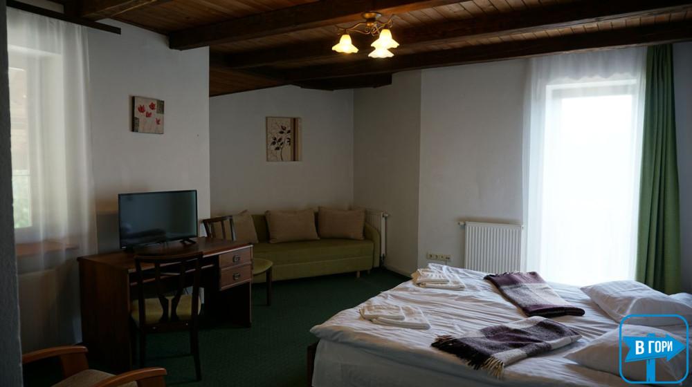 Пансион «Альпийский двор» предлагает 10 стандартных однокомнатных номеров (8 двухместных, 2 трехместных) и 8 однокомнатных номеров «полулюкс».