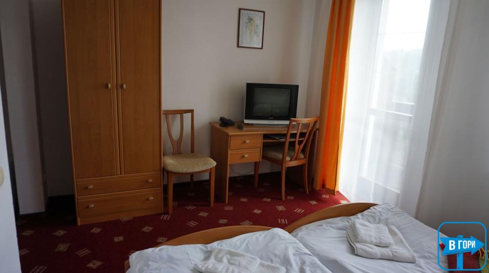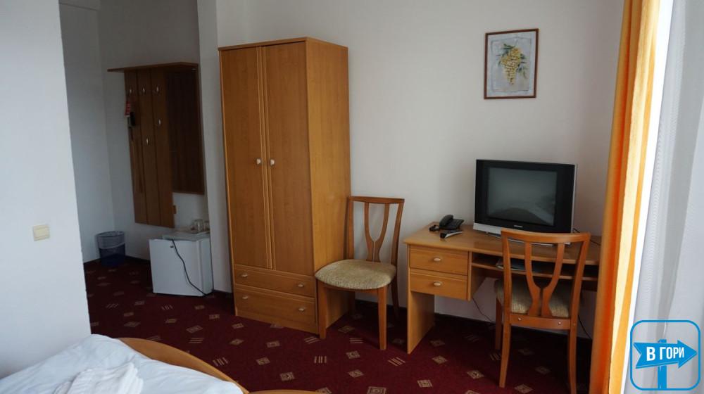 Стандартный – однокомнатный номер, 16 м2, ковровое покрытие, кровати (согласно количеству мест: 2, 3), письменный стол, телевизор, внутр.телефон, мини-холодильник, сейф, шкаф для одежды, санузел (туалет, умывальник, душ, фен, полотенца).