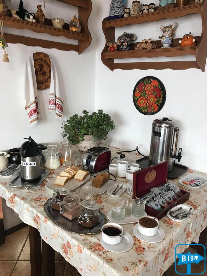 В ресторане отеля, оформленном в традиционном стиле, подают блюда украинской кухни, которые можно отведать на террасе. В баре предлагают разнообразные напитки.