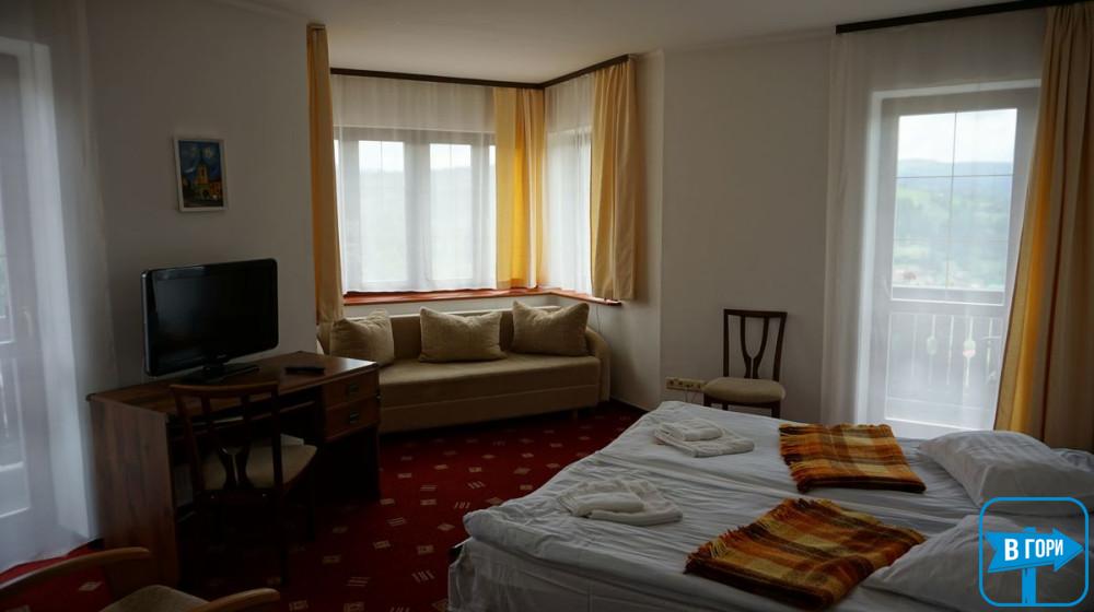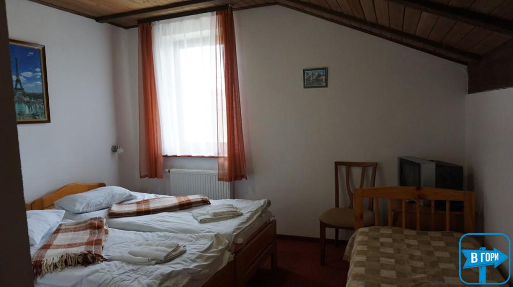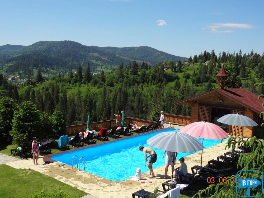 Непосредственно с пансиона можно увидеть все горнолыжные подъемники Славска: на западе – гора Тростян, на севере – подъемники Варшавка и Политехник, на юге – гора Погар и далее Захар Беркут.