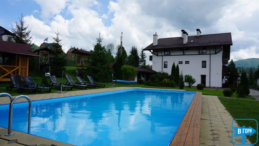 Пансион построен в Славском в 2007 г. в стиле «альпийское шале» и расположен в экологически чистой местности курорта пгт. Славское, на склоне горы на высоте 674 м над уровнем моря.