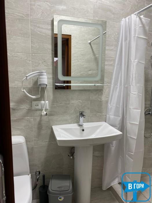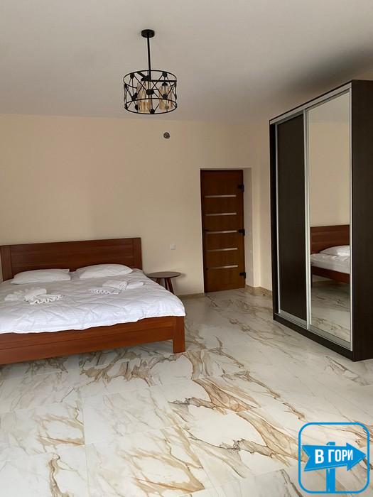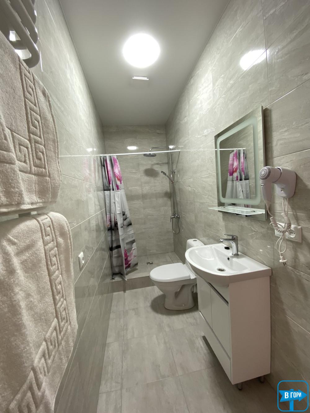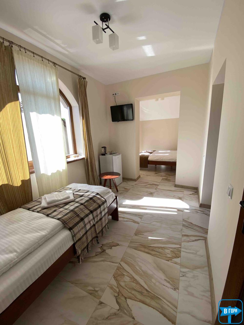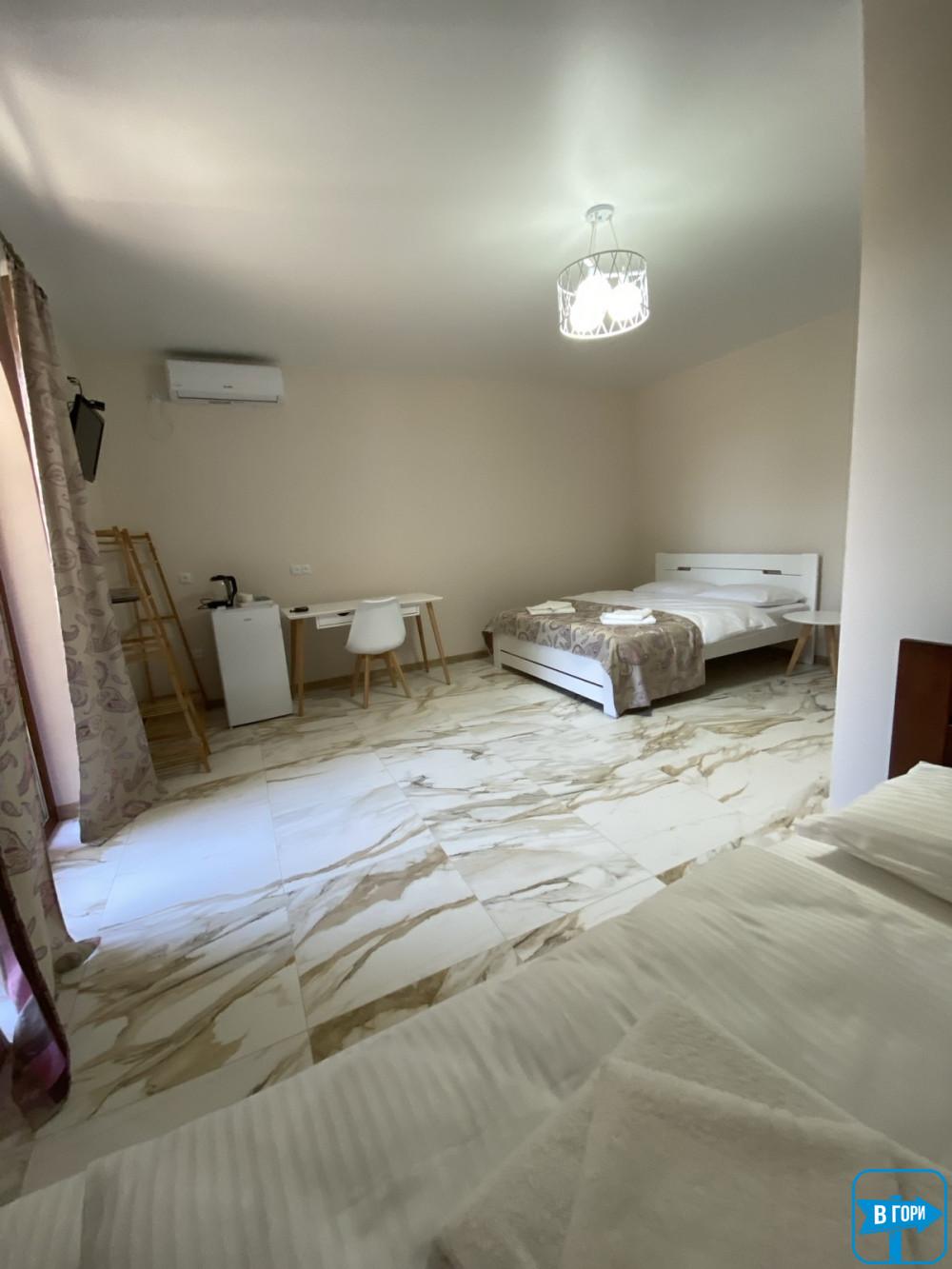 Двуспальная и односпальная кровать, телевизор, кондиционер, холодильник, вешалка для одежды, ванная комната, полотенца.