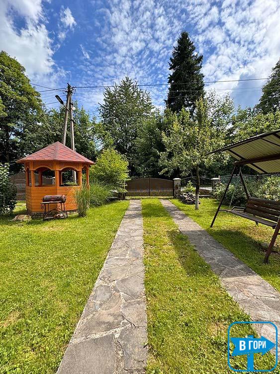 Здесь есть сауна для отдыха, беседка, мангал и качели.