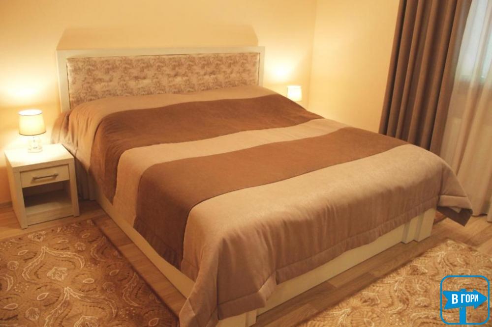 Номерной фонд оформлен в теплых тонах, что способствует комфортному и полноценному отдыху и сну. В каждом установлена удобная мебель, зеркало, шкаф, телевизор, а уют создает грамотно подобранный текстиль.