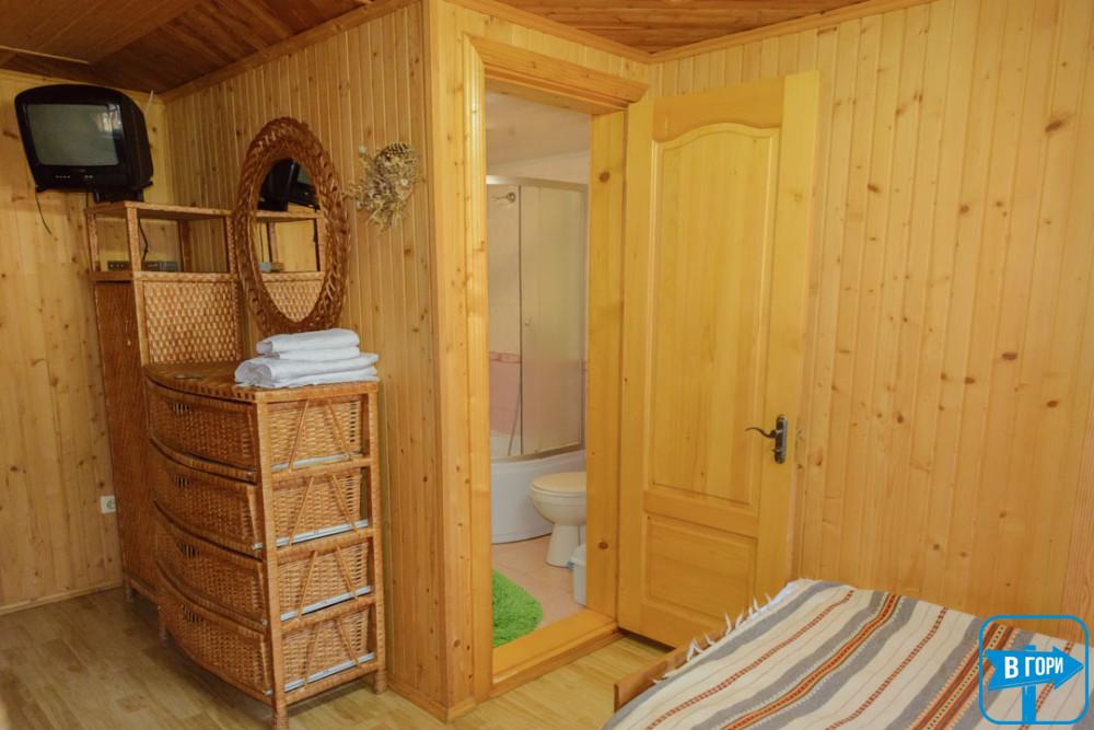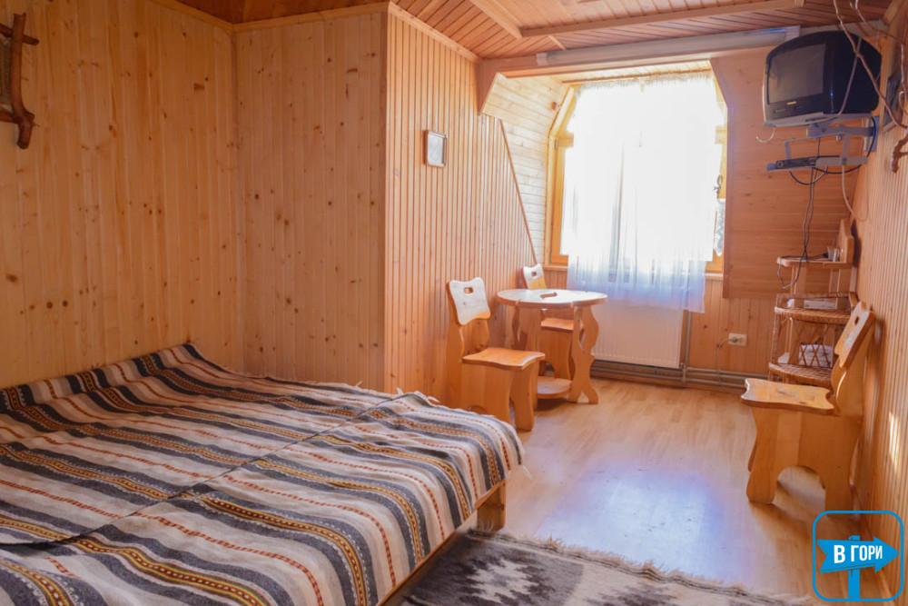 На втором этаже расположена двухместная просторная спальная комната с видом на карпатский лес.