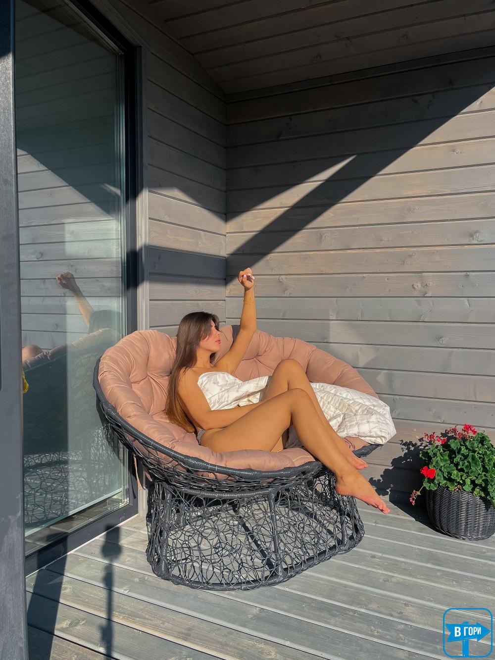 Просторная терраса со столом и кресельцами – идеальное место для отдыха и наслаждения природой. Здесь вы также найдете выносной диван, где можно расслабиться и насладиться свежим воздухом.