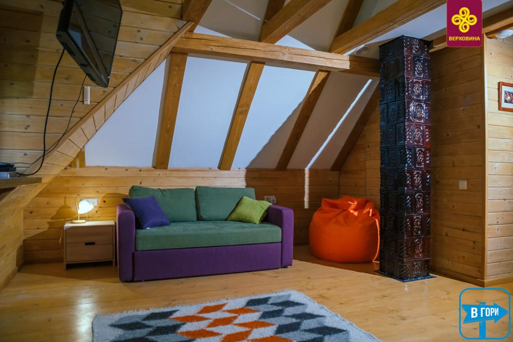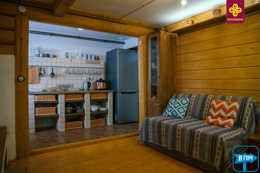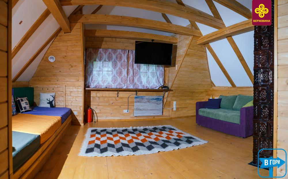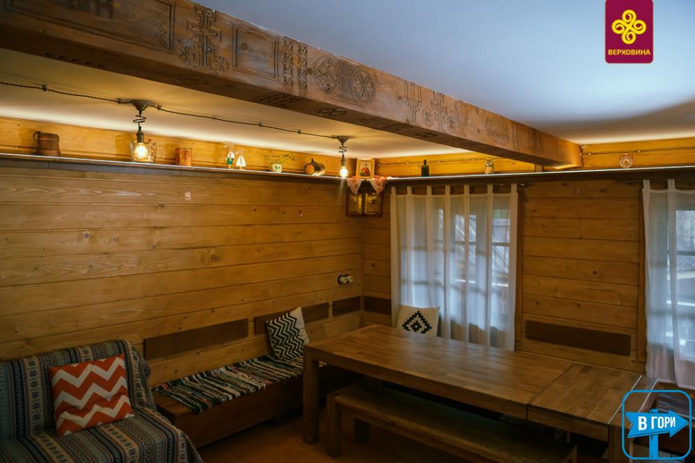 Это настоящая гуцульская хата снаружи, современная, уютная и комфортная внутри, стилизованная в соответствии с давними гуцульскими традициями.