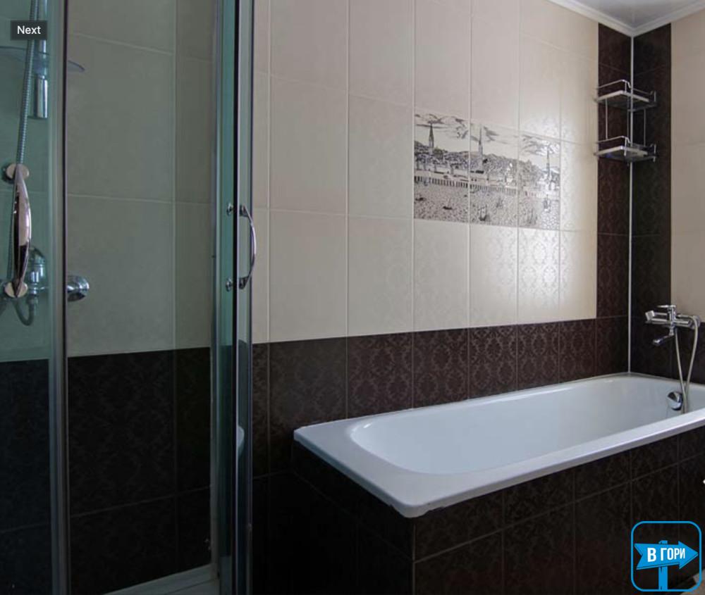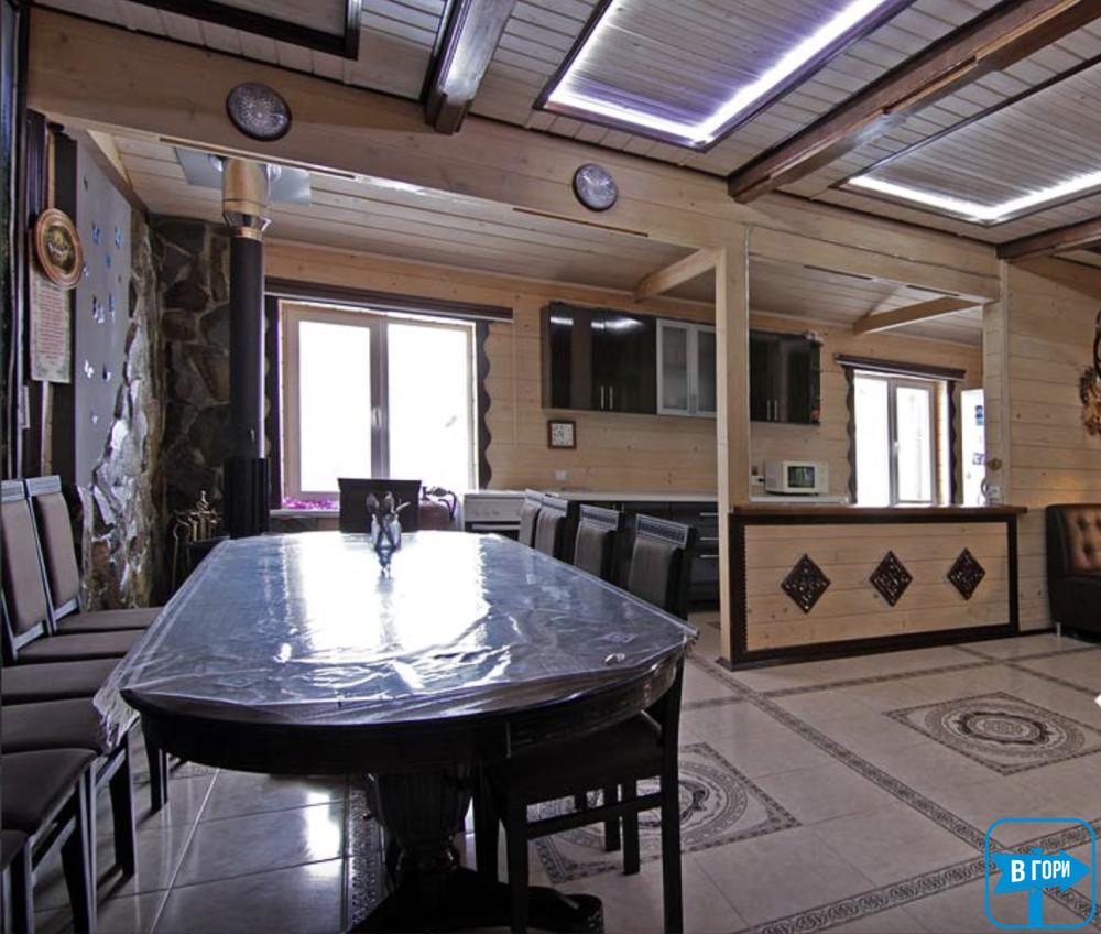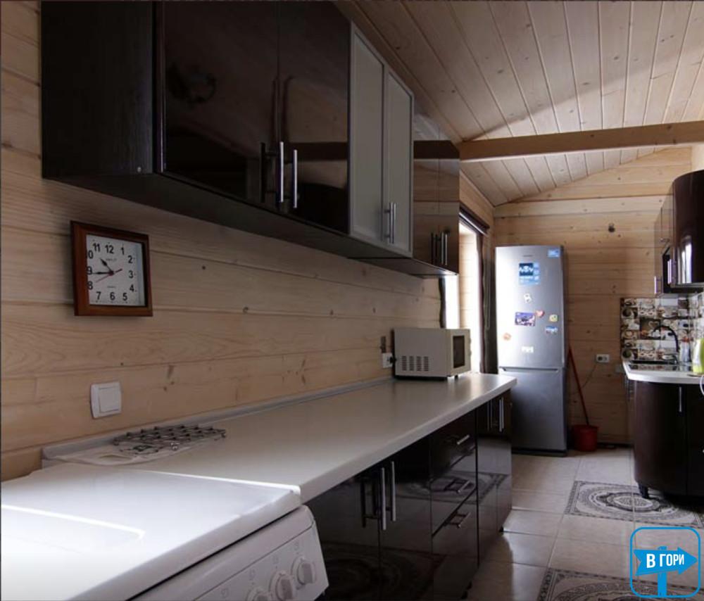 На первом этаже – кухня-гостиная (раскладной уголок, стол со стульями, телевизор), двухместный стандарт и санузел.