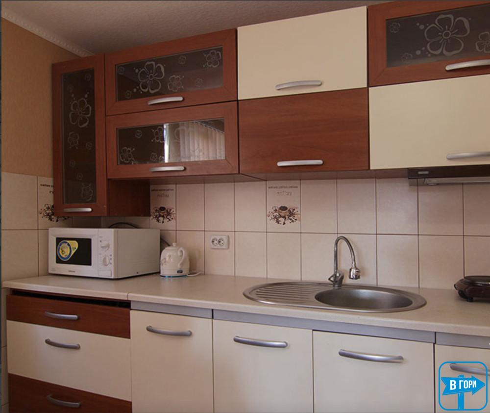 Светлая и просторная, в современном дизайне, с необходимой электротехникой для приготовления пищи.