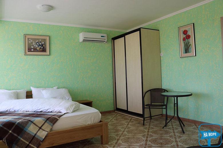 Номера категории «Стандарт»: размещены в трехэтажных каменных домах. Однокомнатные с двуспальной кроватью, раскладным диваном, телевизором, холодильником, кондиционером, шкафом для вещей, бесплатным Wi-Fi. Площадь номера: 35 кв. м