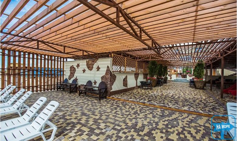 на территории есть закрытая парковка на 17 машин (бесплатно). С вашими детьми занимается аниматор на крытой детской игровой площадке с горками и батутом, множеством детских игрушек. Для отдыха на свежем воздухе и вечерних посиделок есть большая крытая зона отдыха и барбекю.