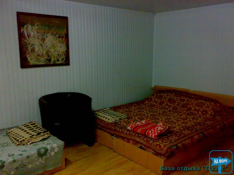 Однокомнатный отдельный большой домик, размером 7х5 м, для семейного отдыха семьи, состоящей из четырех человек (с двумя детьми) недорогой категории "Стандарт" (без дополнительных удобств в номере).