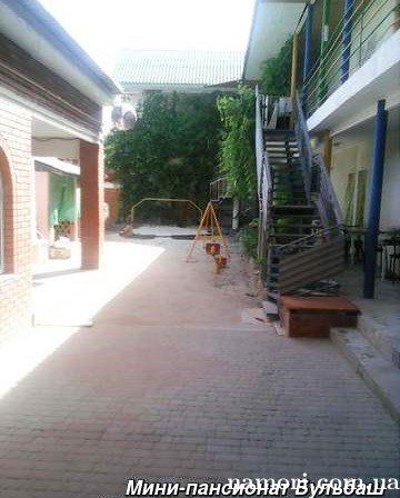 Жемчужина Азовского моря Арабатская стрелка в курортном поселке Счастливцево предлагает летний отдых в частном пансионате "Бульбаш". Проживание в двухэтажном кирпичном здании. От пансионата 5 минут ходьбы до моря (250 м).