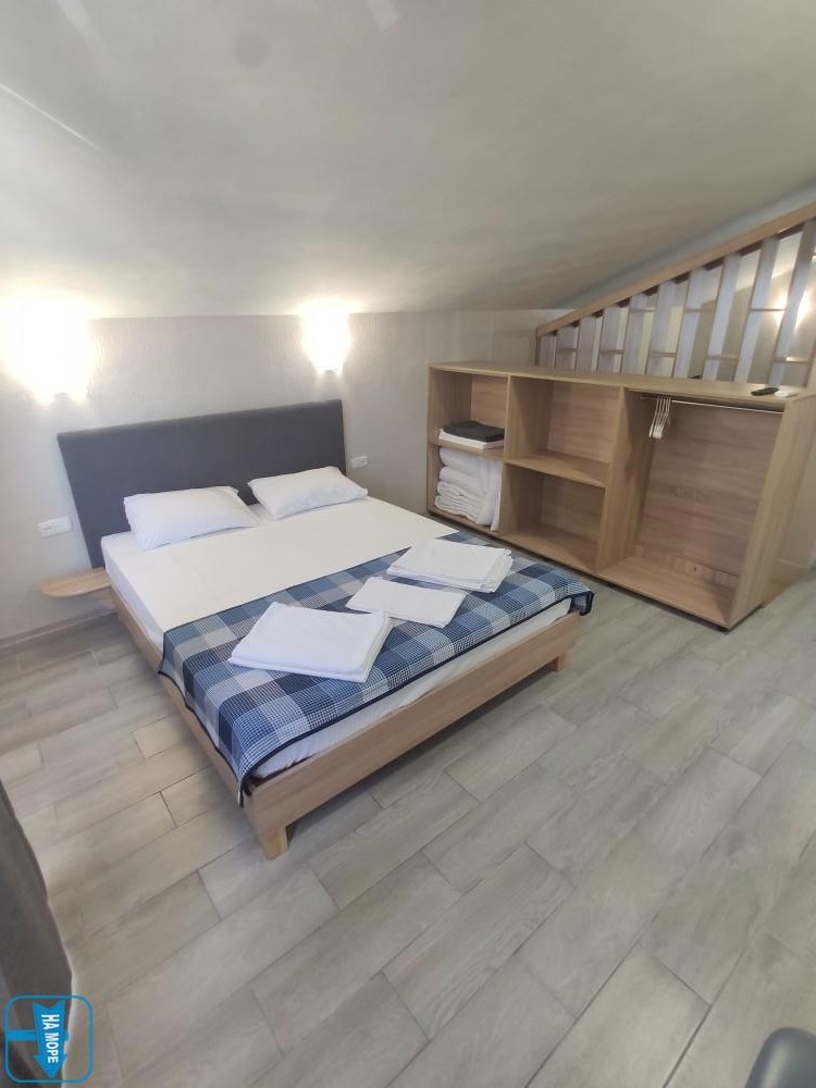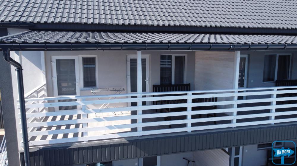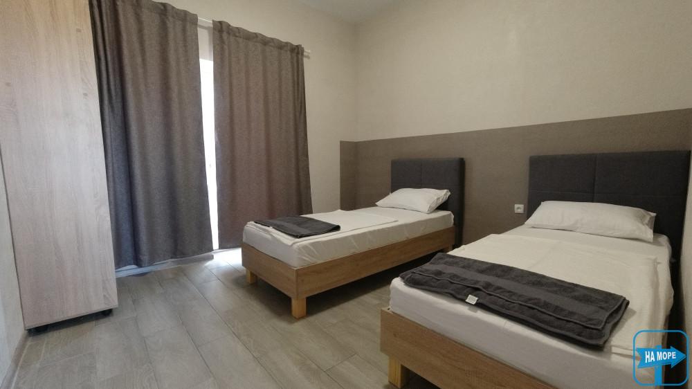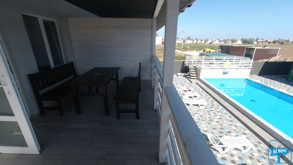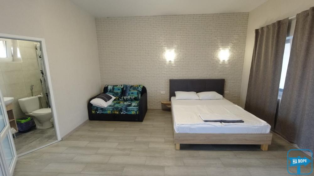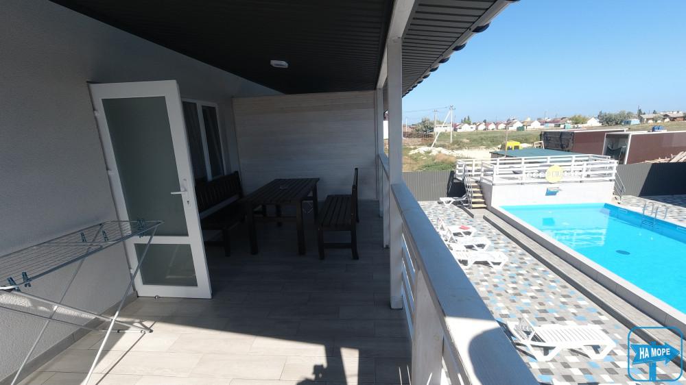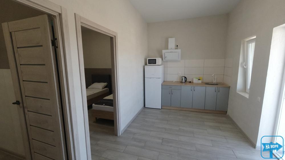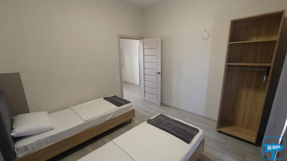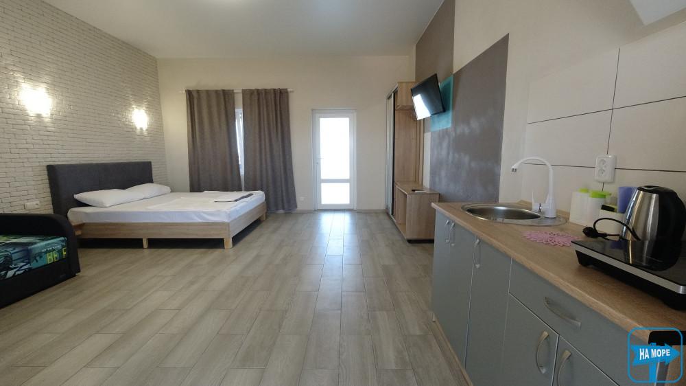 Номера расположены на втором и третьем этажах трехэтажного корпуса. Состоят из спальни и гостинной комнаты с кухонной зоной. Рассчитаны на проживание до 6 человек и имеют площадь 55 кв.м. На нижнем этаже - гостинная, кухня, санузел, выход на террасу в 12 кв.м с деревянным столом, двумя лавочками и сушилкой для белья. На верхнем этаже - спальня, выход на балкон с видом на море и бассейн.