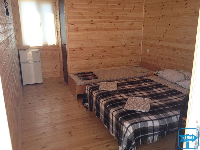 Гостям предлагаются 2-х и 3-х местные номера «Полулюкс». Новые домики, внутри отделка натуральным деревом. В номерах санузел с душем, туалетом и умывальником, холодильник, телевизор со спутниковыми каналами, двуспальная кровать + односпальная кровать, шкаф, тумбочка.