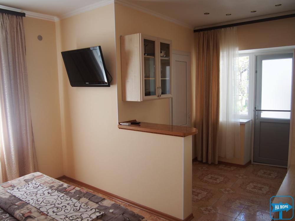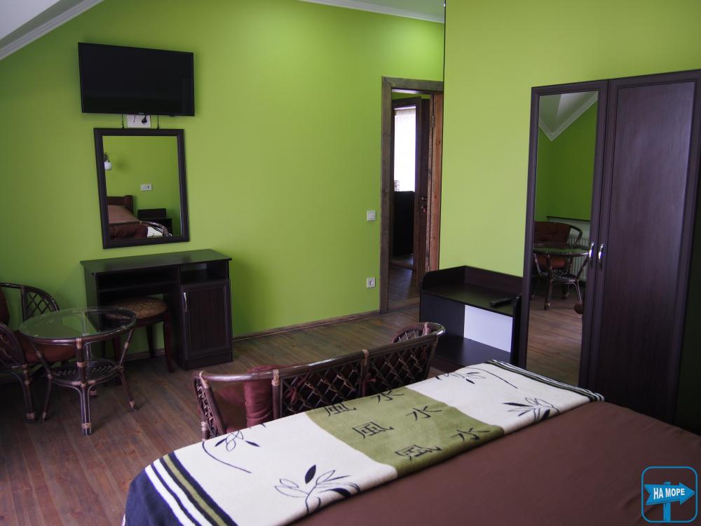 «Люкс» — комфортабельный однокомнатный номер со всеми удобствами (туалет, душ, холодильник, кондиционер, телевизор). Рассчитан на проживание 2-3-4-х человек.