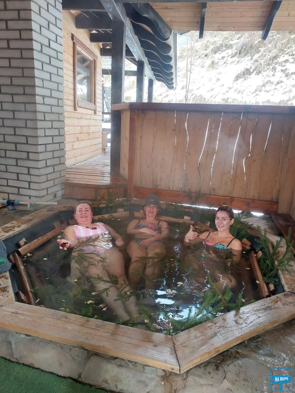 В стоимость включены чистые полотенца и насыщенный карпатский чай с душистым горным медом. Также в сауне есть оборудованная комната отдыха. И конечно, что за карпатская сауна без водоема с ледяной горной водой, в который так хорошо погрузиться после горячего массажа свежим венчиком.