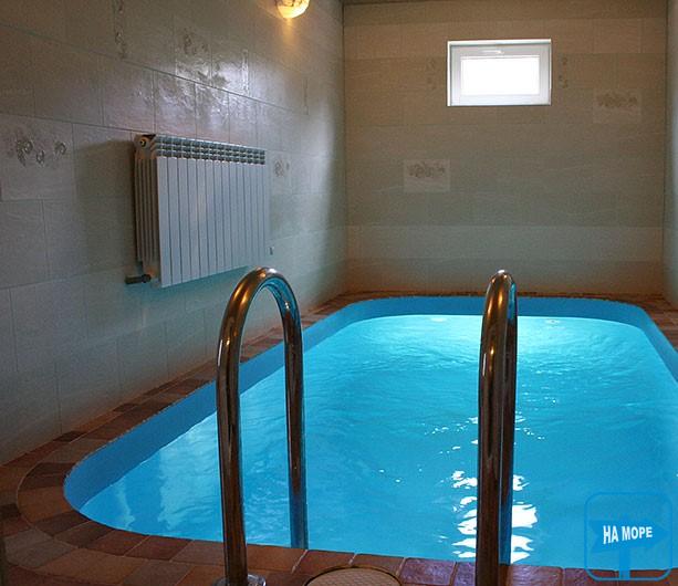 "Банька" для 4-6 человек на дровах с бассейном (4,5x2 м) и бочкой для обливания.