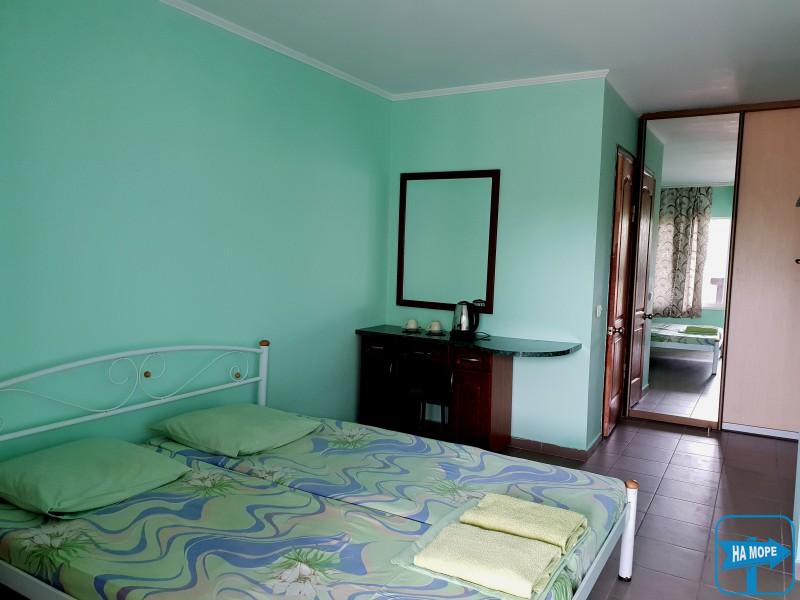 Однокімнатні номери в морському корпусі, який стоїть прямо на пляжі, кожен з власним входом. У номерах: санвузол; холодильник, електрочайник; кондиціонер; телевізор; двоспальне ліжко; шафа купе крита веранда з дерев'яними меблями.