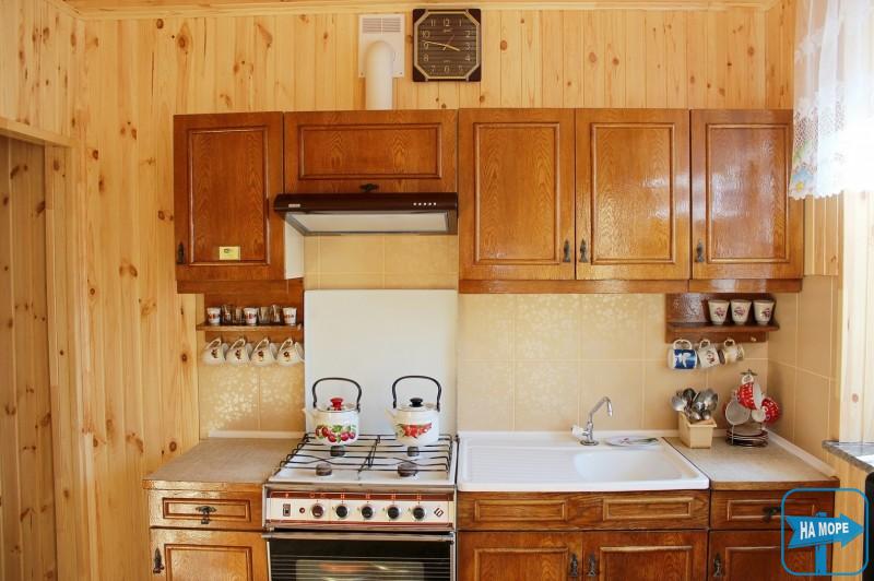 У котеджі є кухні загального користування, призначені для самостійного приготування їжі. Також є два номери з кухнями.
