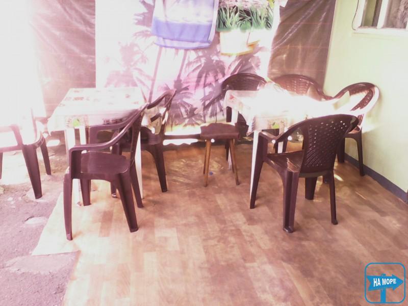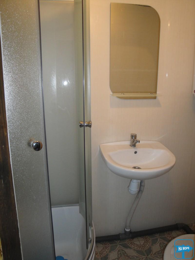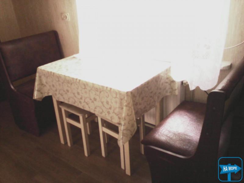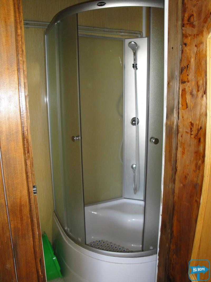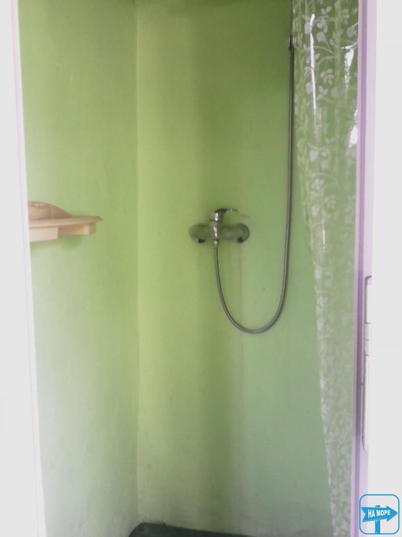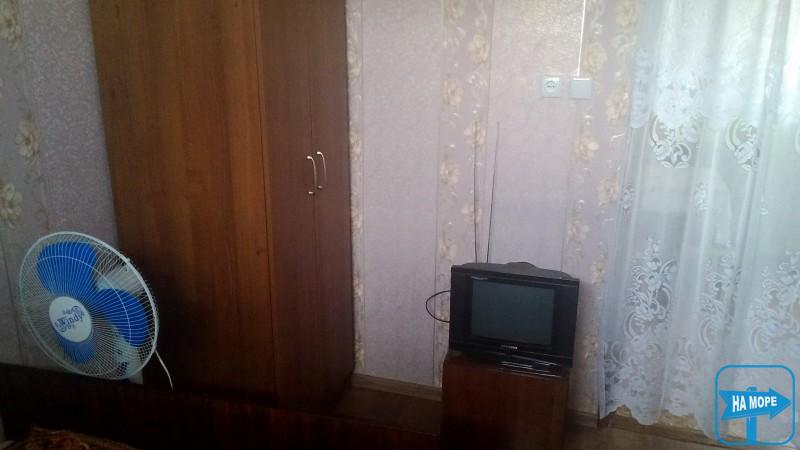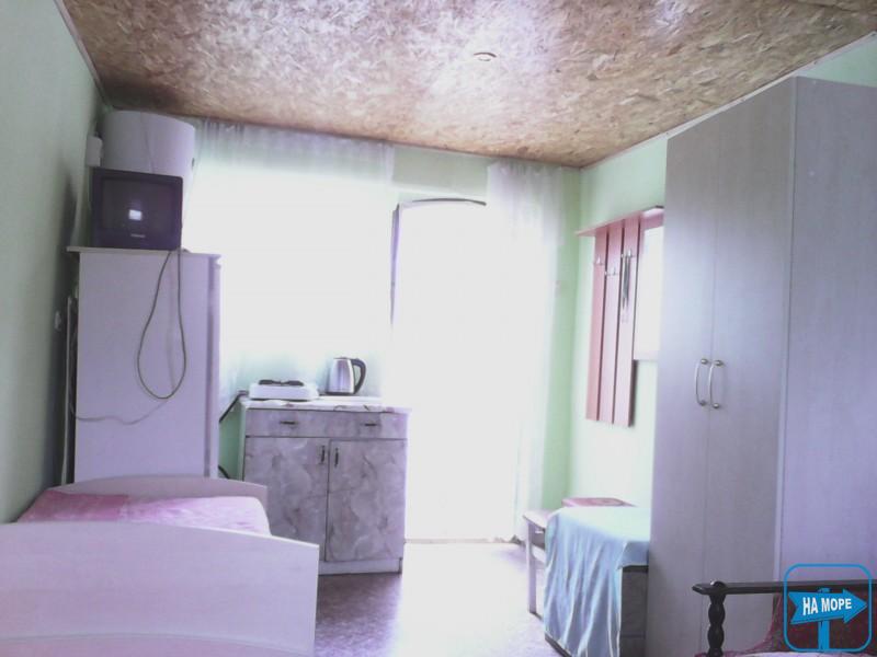У номері: двоспальне ліжко, односпальне ліжко з ортопедичним матрацом, шафа для одягу, дві тумбочки, телевізор, вентилятор. Вихід із номера на криту терасу довжиною 13 метрів, з одного боку якої кухня, з іншого - душ і туалет, посередині три кух. куточка.На виході з тераси два столики для охочих посидіти на повітрі.