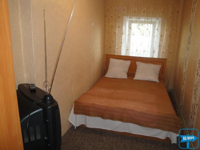 Будиночок під ключ для 3-4 чоловік. У номері двоспальний диван, два односпальні ліжка з ортопедичними матрацами, шафа для одягу, холодильник, телевізор, вентилятор, 3 тумбочки, вішалка, газова 2-конфоркова плита, посуд та ін. приладдя. На вулиці окремий столик. Душ і туалет поруч із будиночками на 2 будиночки.