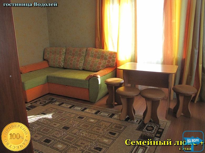 • Сімейні номери класу Люкс – це гордість готелю, дуже просторі до 50 кв. м. Кожен номер оформлений в індивідуальному стилі і обладнаний сучасними меблями, супутниковим телебаченням, кондиціонером, феном, праскою, ванною кімнатою з душовою кабіною або ванною, а найголовніше вбудованою кухнею з газовою піччю і всім необхідним посудом.