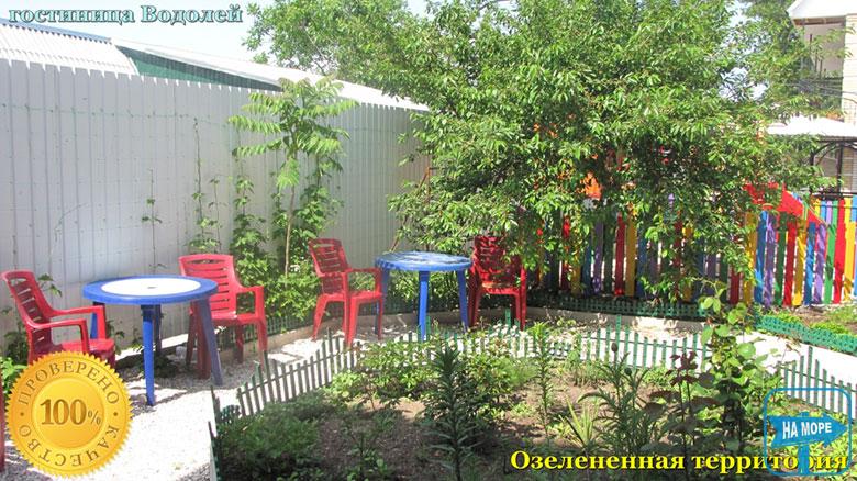 Територія готелю озеленена. По центру розташований дитячий ігровий комплекс з різними драбинками, гірками, дерев'яним будиночком, брусами, кільцями, турником та баскетбольним кільцем. Також у дворі є велика альтанка з підключеним кабельним телебаченням, де завжди діти можуть переглянути улюблені мультфільми, а їхні батьки - футбольні матчі та інші телевізійні програми.