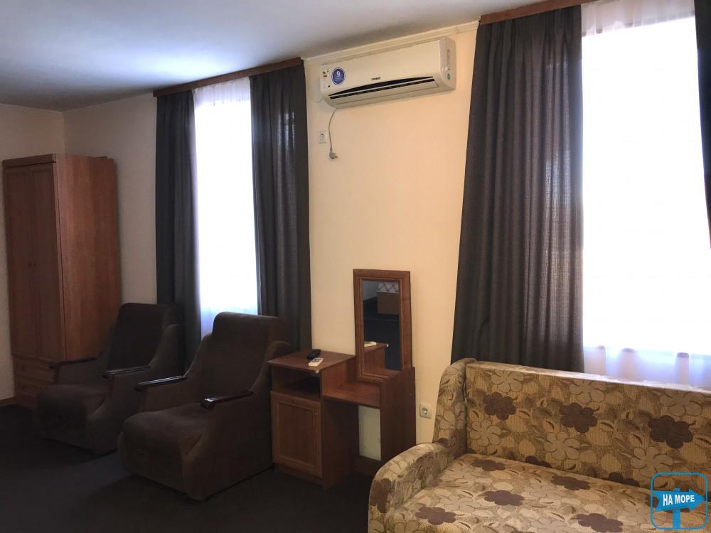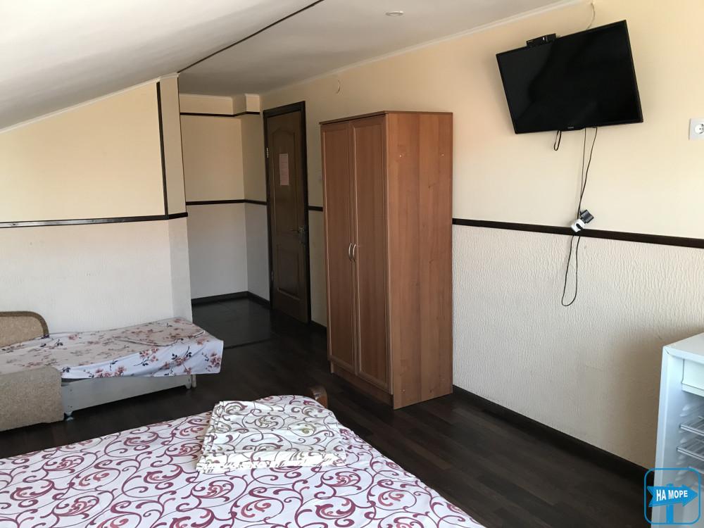 Усі номери укомплектовані, щоб кожен гість відчував комфорт: телевізор, кондиціонер, Wi-fi, холодильник, зручні меблі, санвузол, гаряча вода. Є номери з терасою та видом на море. Обладнана кухня з газовою плитою, мікрохвильовою піччю та електрочайником.