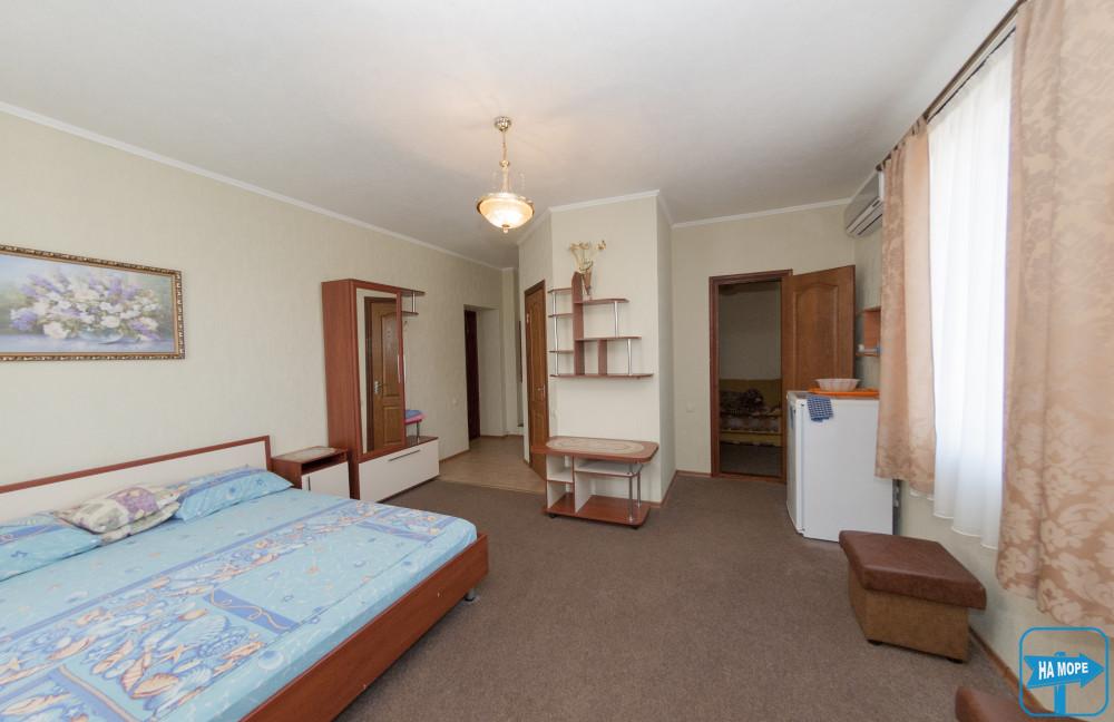 У першій кімнаті два односпальні ліжка, у другій кімнаті двоспальний диван, два крісла-ліжко, є можливість додаткових місць (для дітей). Вигоди для поселення двох сімей з дітьми.