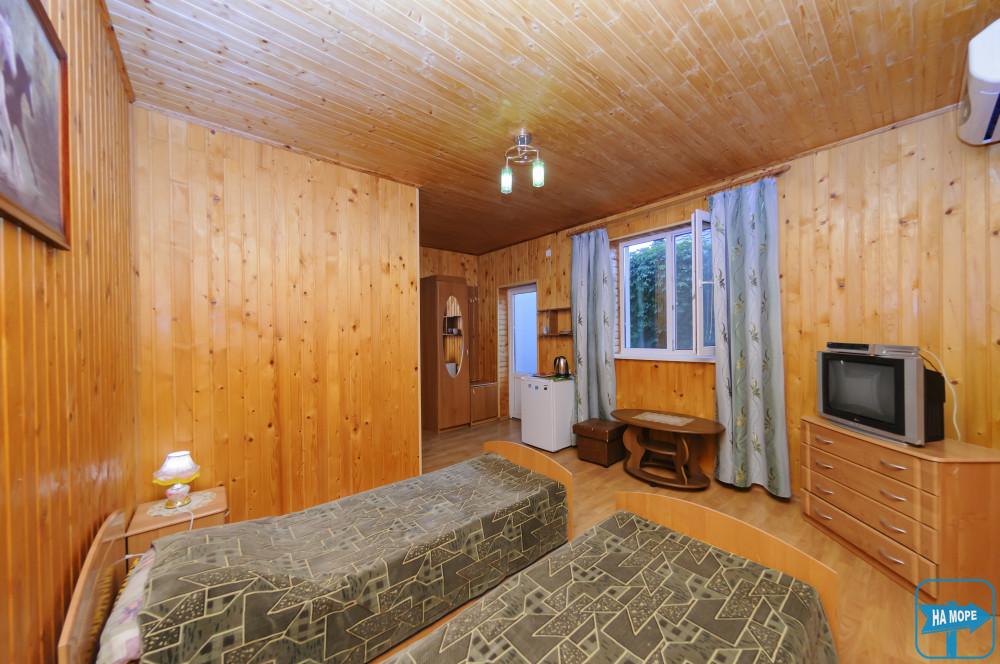 однокімнатний двомісний, двомісний диван, що розкладається, обробка стін і стелі деревом, другий поверх, окремий вхід з терасою.