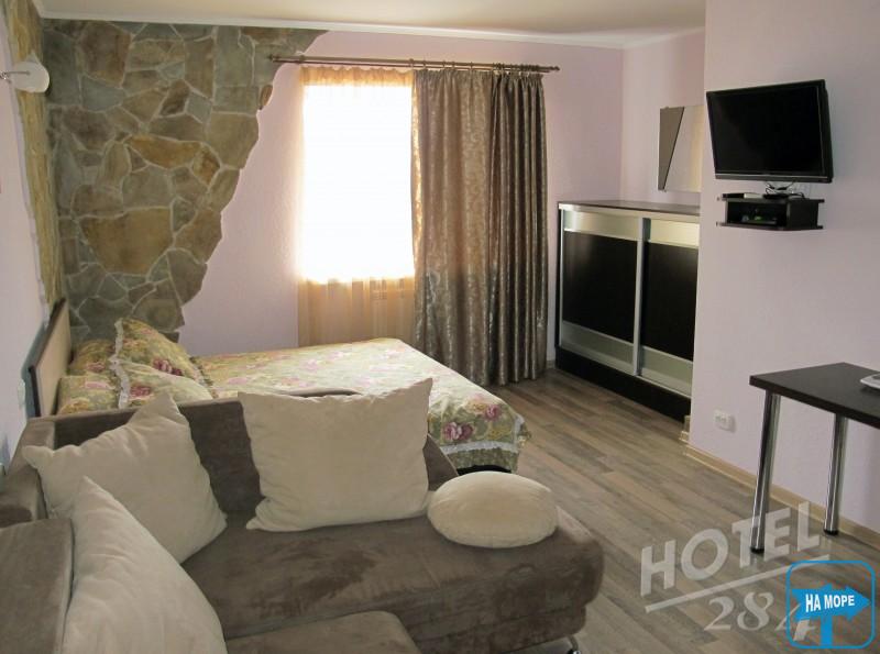 Номери цього типу розташовані на 1, 2 та 3 поверхах Готелю. Кожен номер має плоский телевізор із супутниковими каналами. Холодильник, кондиціонер, індивідуальна душова кабіна і санвузол, умивальник. Гаряча вода цілодобово. Wi-Fi безкоштовний. Номер укомплектований особливо широким двоспальним гіпоалергенним ліжком і диваном або м'яким куточком. Душові речі та постільна білизна надаються . є шафа для зберігання Ваших речей.